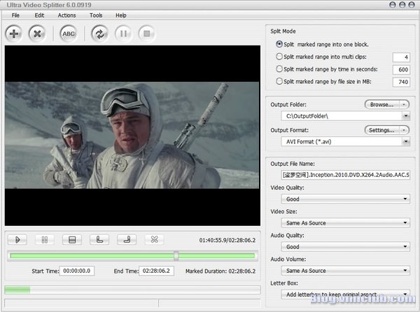 Ultra Video Splitter là một công cụ giúp bạn cắt, tách một đoạn video lớn ra thành các đoạn video nhỏ, hoặc bạn có thể lựa chọn điểm bắt đầu và kết thúc bất kỳ trong một cuốn film dài để xem lại đoạn film yêu thích