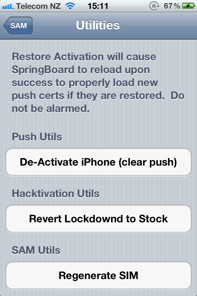 12. Push notifications may stop working after this procedure but can be easily restored by "clear push" utility in SAM followed by connecting to iTunes.